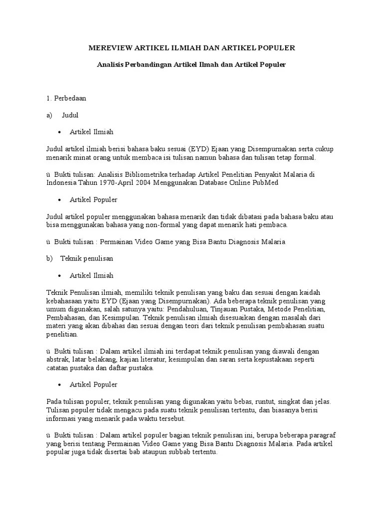 Semua capital, bold, margin tengah, arial ukuran 14 (contoh penulisan judul artikel) . Memperhatikan cara mengolah karya ilmiah populer kita agar kuat,. Contoh artikel populer tentang bisnis. (artikel hasil penelitian untuk dimuat pada jurnal). Jurnal ini diterbitkan dengan maksud utama mendiseminasi artikel ilmiah baik berupa hasil penelitian maupun telaah literatur (setara dengan hasil .
